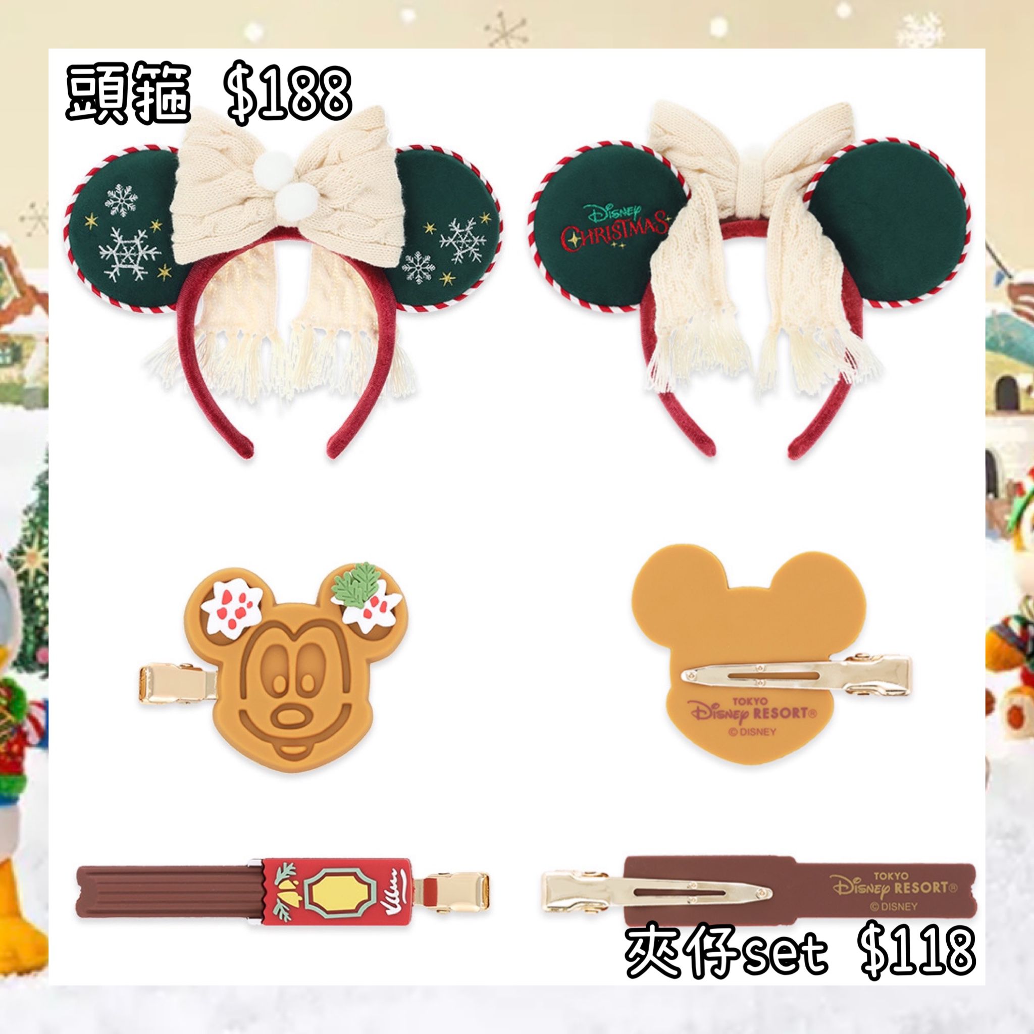 :日本:DISNEY CHRISTMAS 2025 DISNEYLAND園區產品 HOLLY JOLLY CHRISTMAS 10/11 日本發賣 頭箍 夾仔 SET