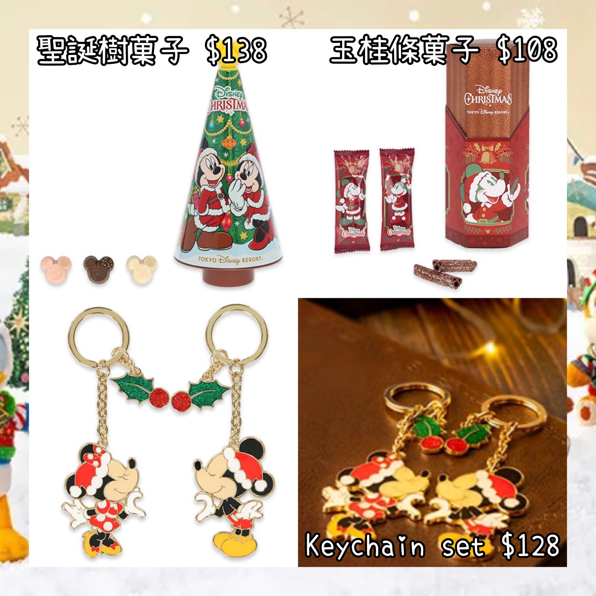 :日本:DISNEY CHRISTMAS 2025 DISNEYLAND園區產品 HOLLY JOLLY CHRISTMAS 10/11 日本發賣 聖誕樹菓子 玉桂條菓子 KEYCHAIN SET