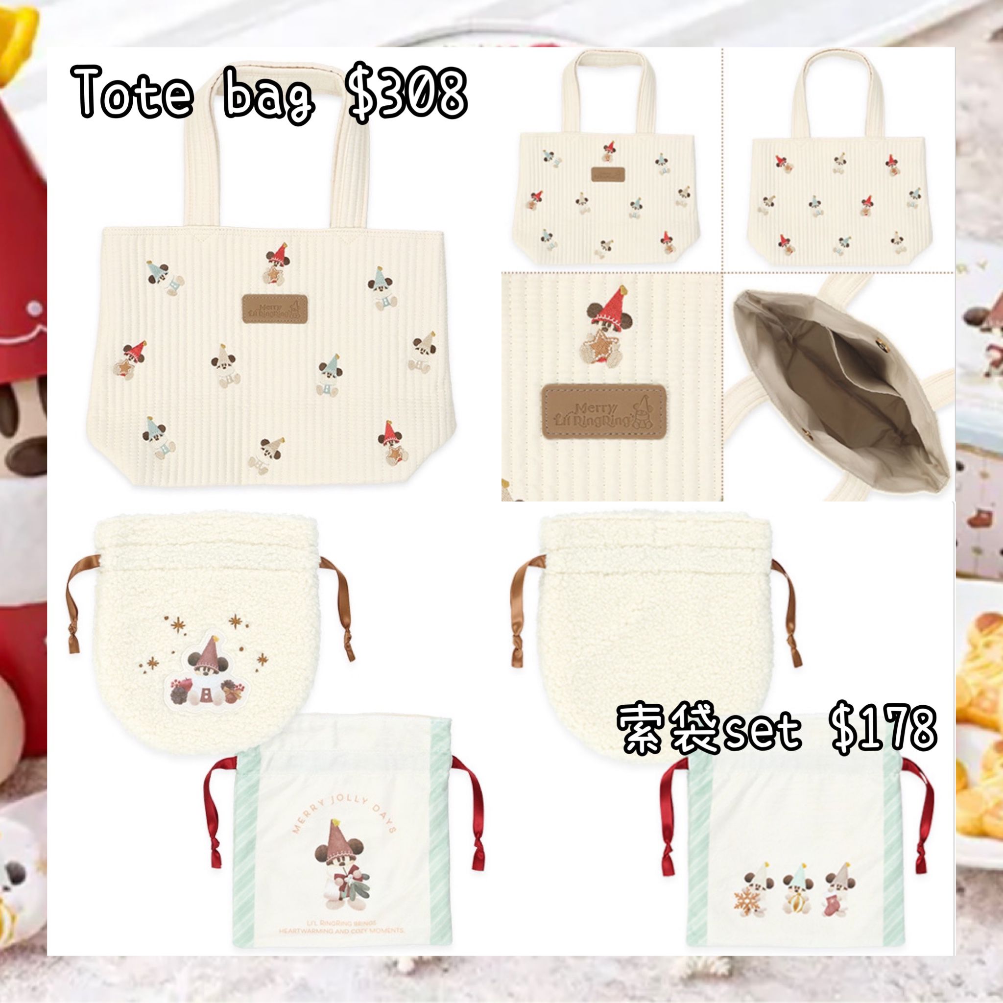 :日本:DISNEY CHRISTMAS 2025 DISNEYLAND園區產品 RING RING MERRY JOLLY DAYS 10/11 日本發賣 TOTE BAG 索袋 SET