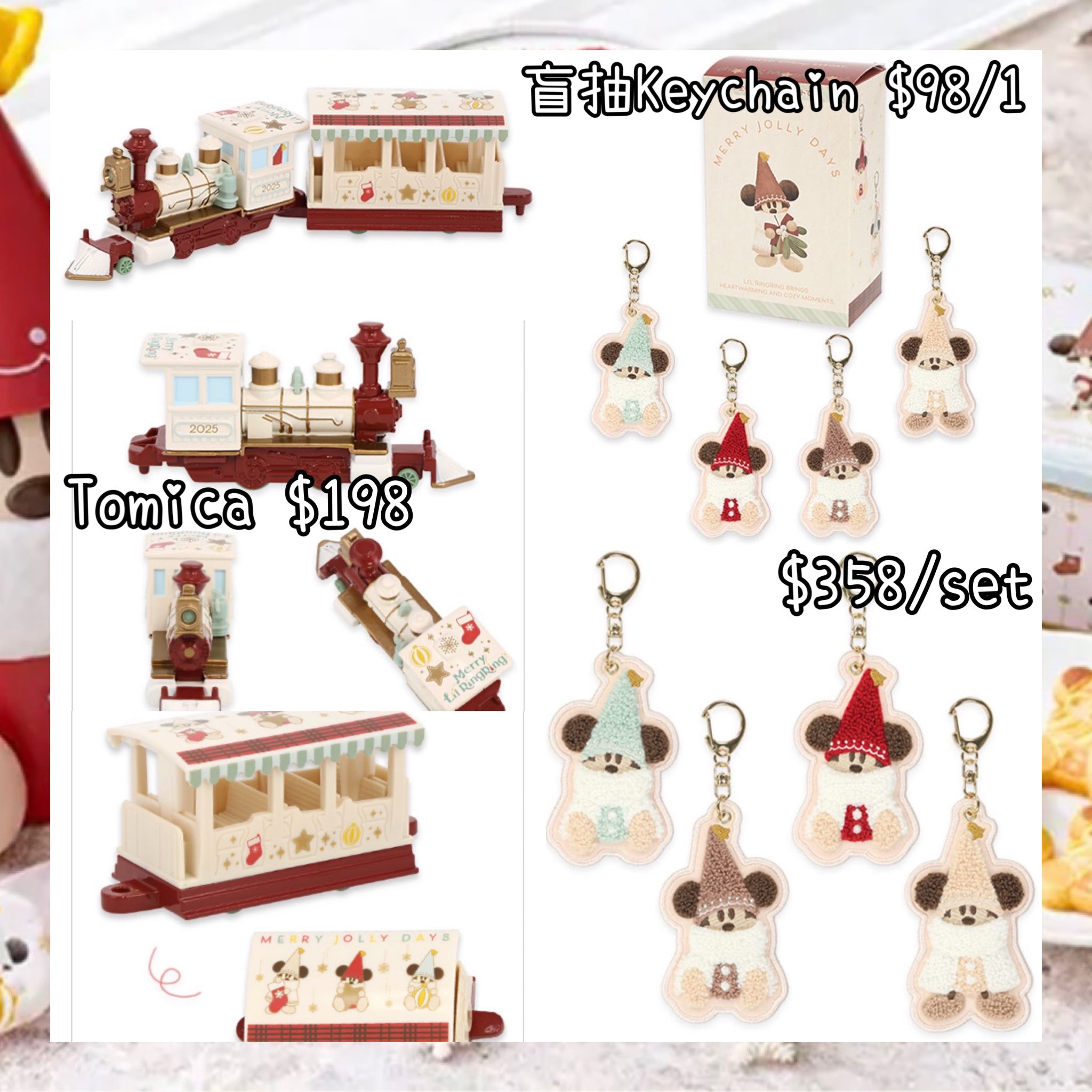 :日本:DISNEY CHRISTMAS 2025 DISNEYLAND園區產品 RING RING MERRY JOLLY DAYS 10/11 日本發賣 TOMICA 盲抽 KEYCHAIN