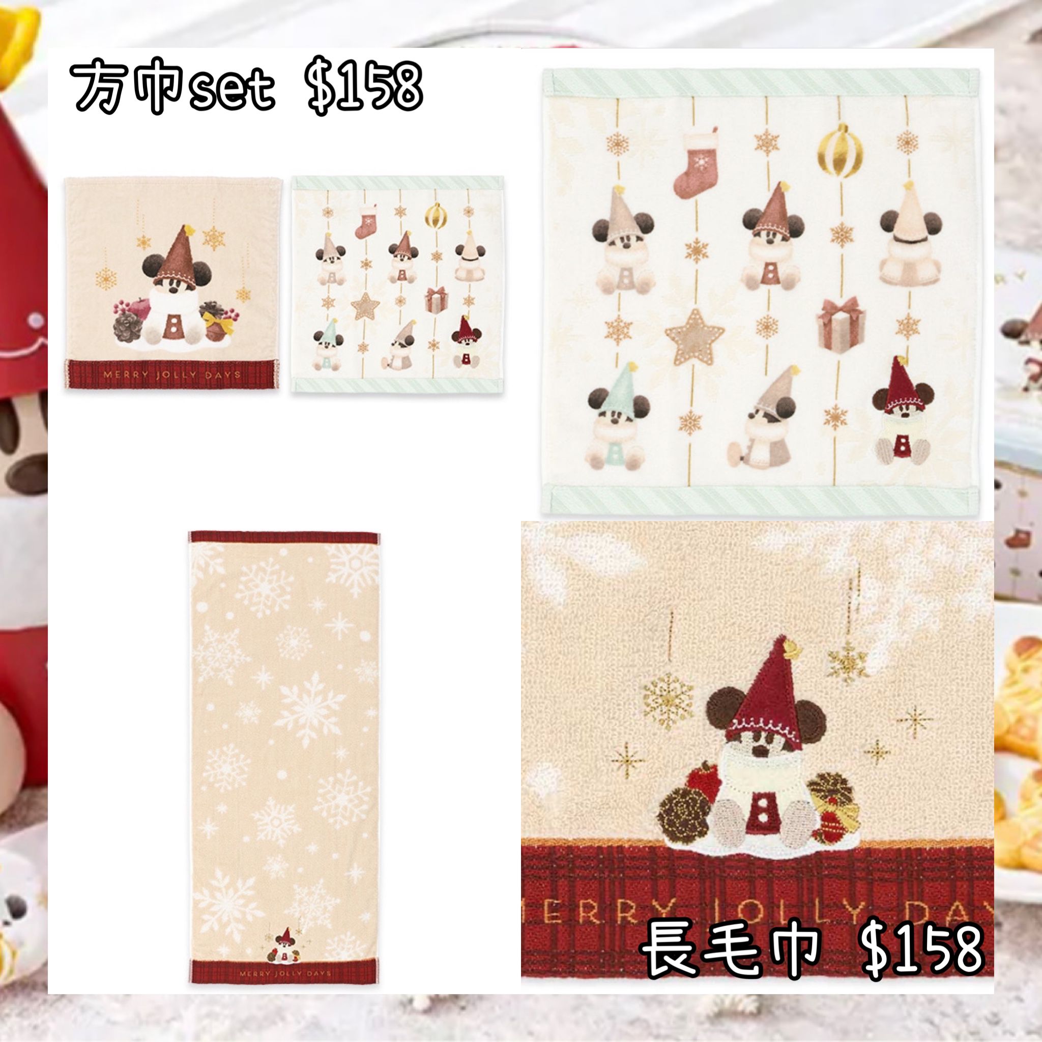 :日本:DISNEY CHRISTMAS 2025 DISNEYLAND園區產品 RING RING MERRY JOLLY DAYS 10/11 日本發賣 方巾 SET 長毛巾