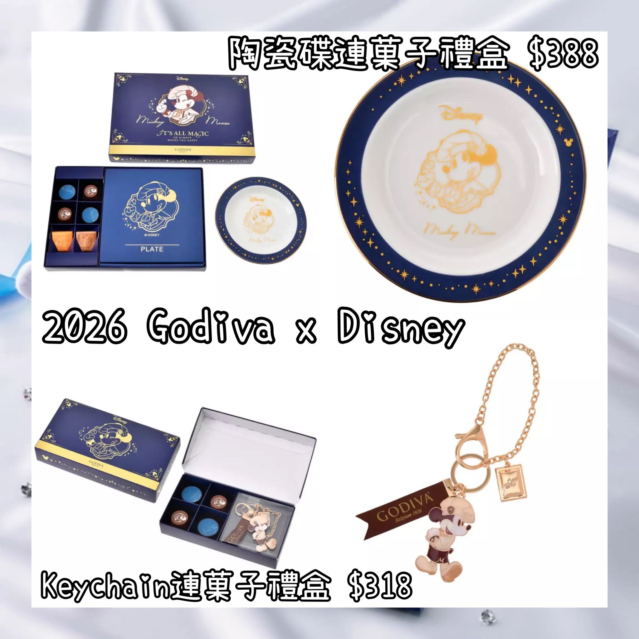 :日本:DISNEY VALENTINE 2026 6/1 日本發賣 GODIVA陶瓷碟連菓子禮盒 KEYCHAIN連菓子禮盒