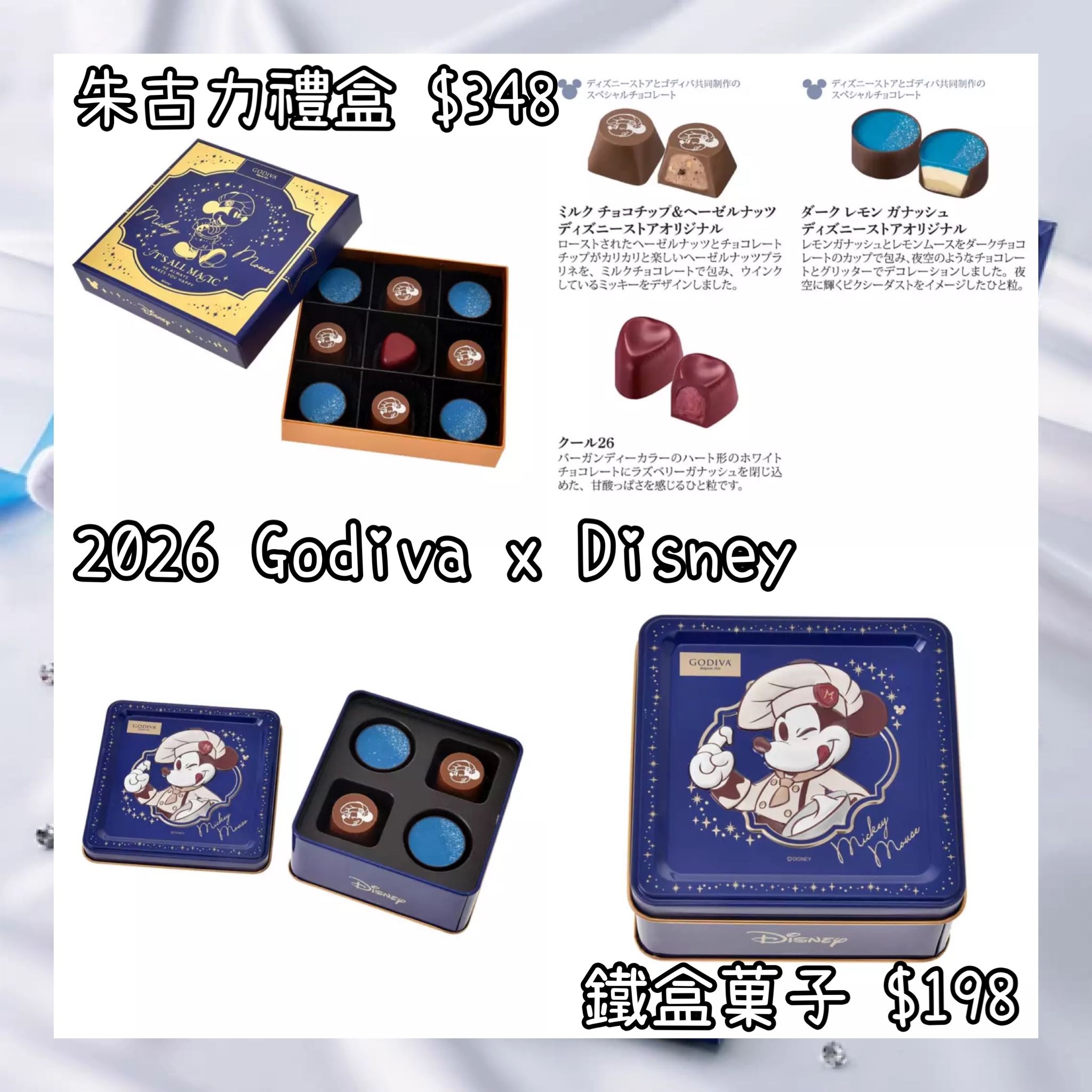 :日本:DISNEY VALENTINE 2026 6/1 日本發賣 GODIVA朱古力禮盒 鐵盒菓子