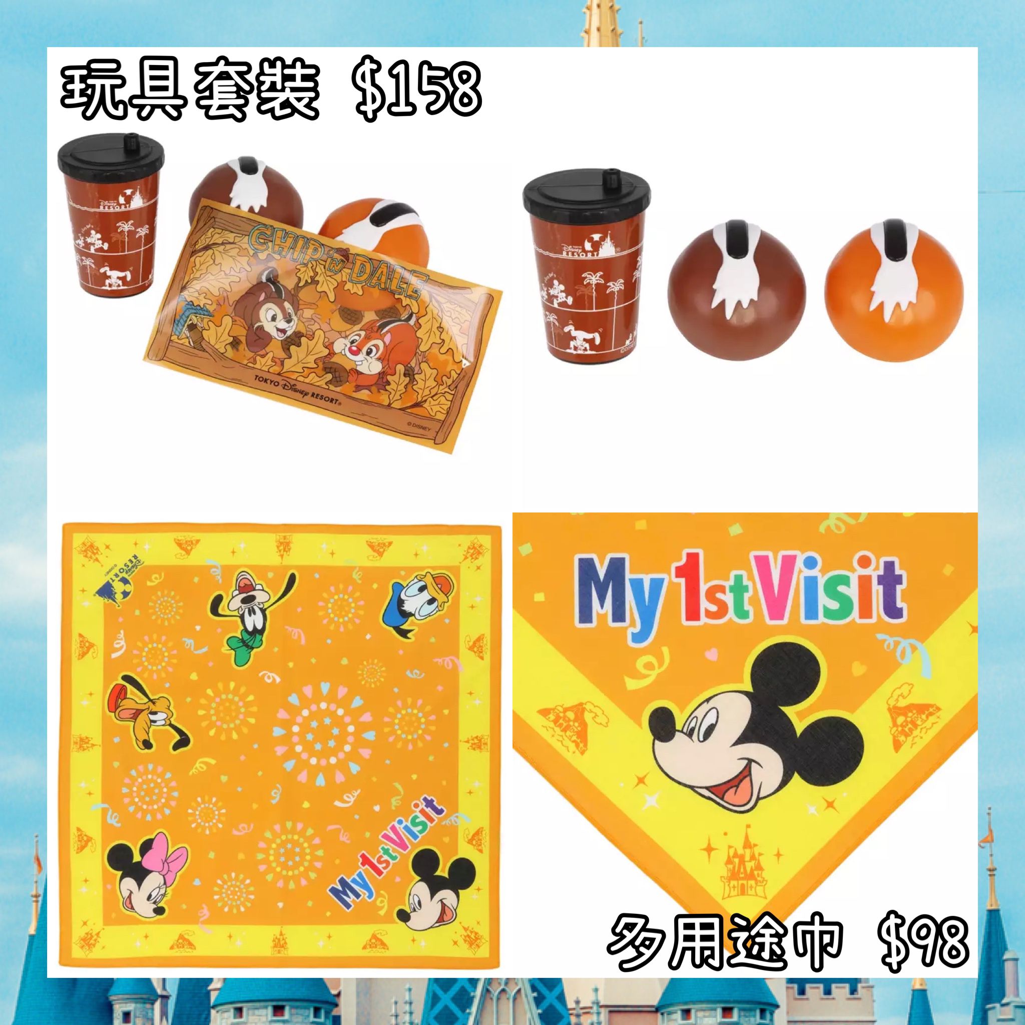 :日本:DISNEYLAND園區產品 9/10 日本發賣 玩具套裝 多用途巾