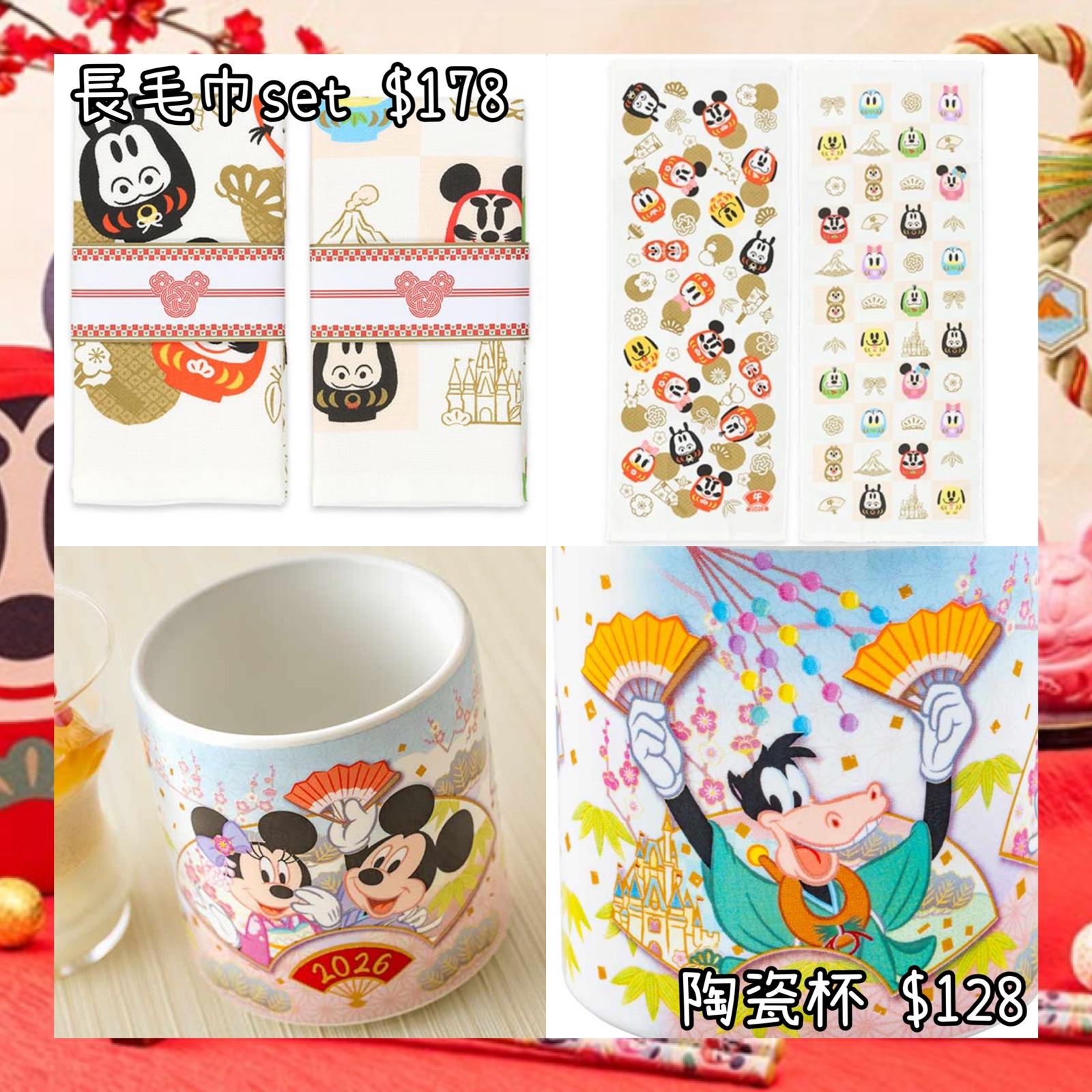 :日本:DISNEYLAND園區產品 正月 2026 NEW YEAR 1/12 日本發賣 長毛巾 SET 陶瓷杯