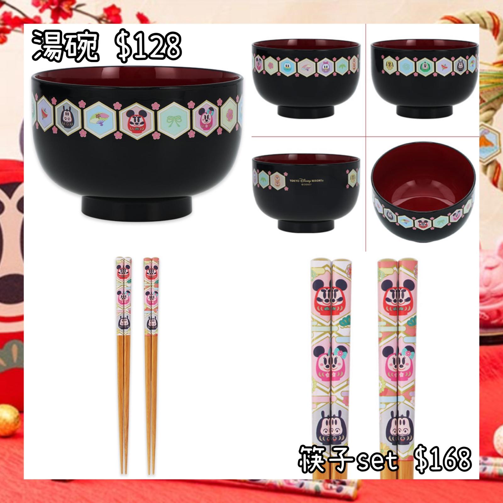 :日本:DISNEYLAND園區產品 正月 2026 NEW YEAR 1/12 日本發賣 湯碗 筷子 SET
