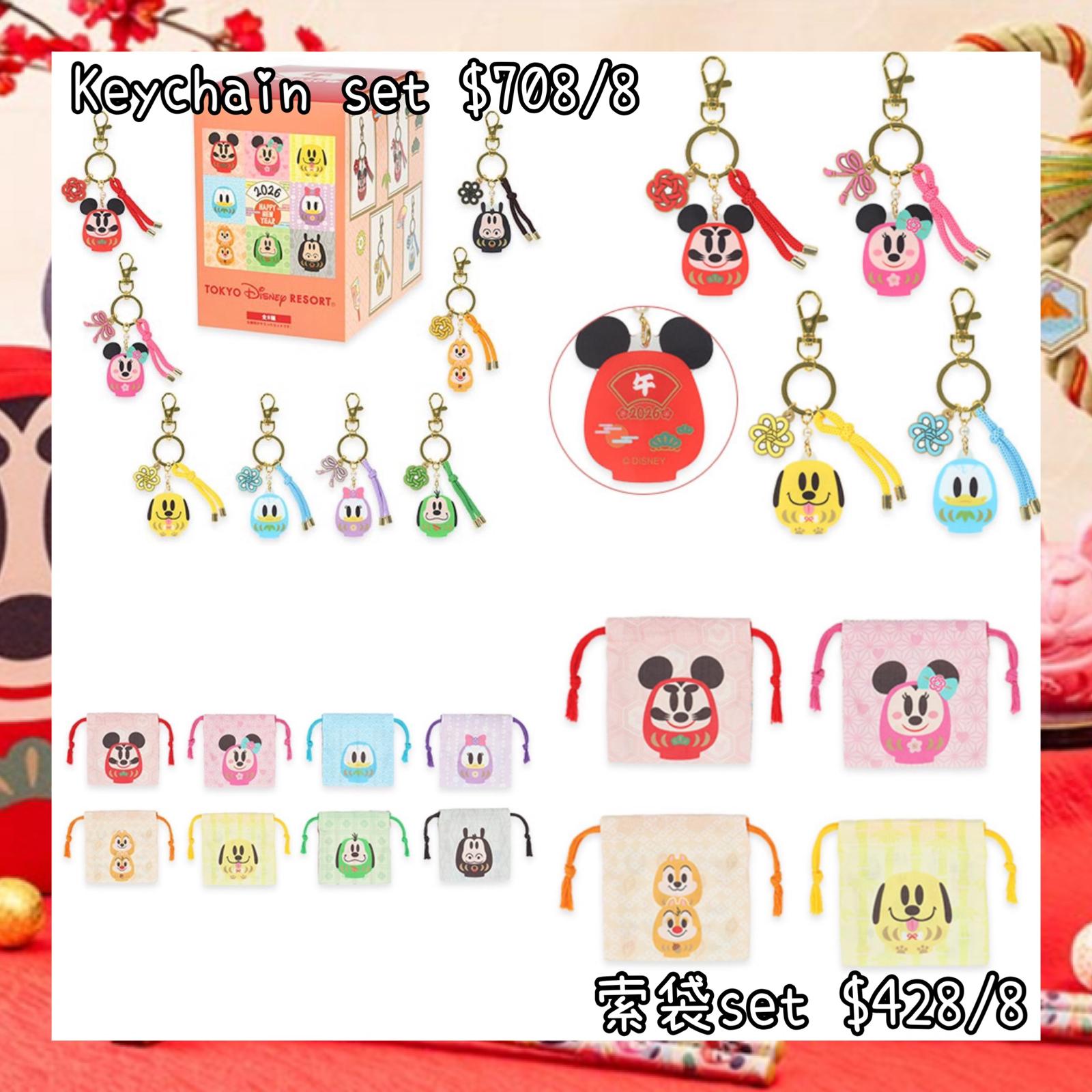:日本:DISNEYLAND園區產品 正月 2026 NEW YEAR 1/12 日本發賣 KEYCHAIN SET 索袋 SET