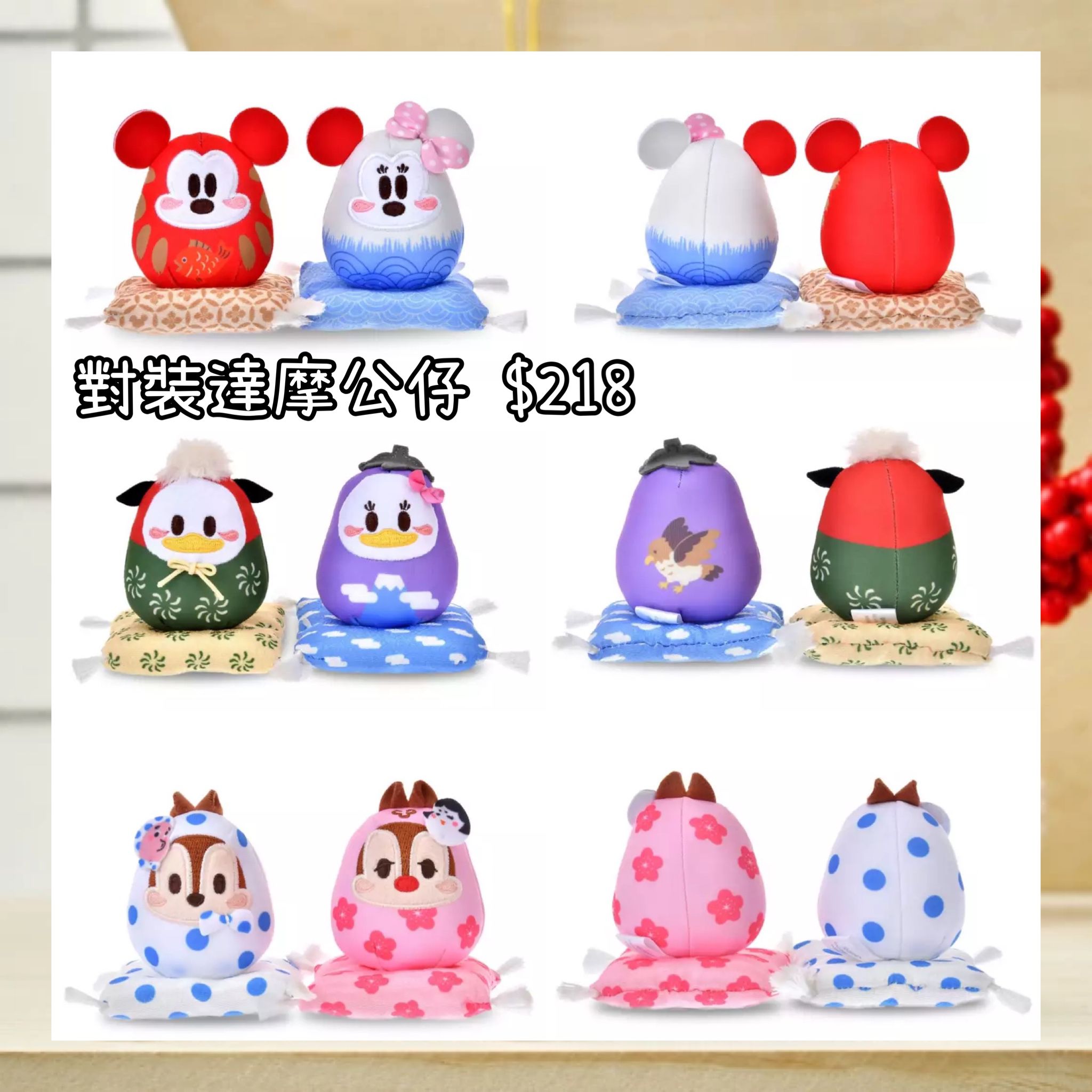 :日本:2026 NEW YEAR 2/12 日本發賣 對裝達摩公仔opt 款式:MICKEY MINNIE / DONALD DAISY / CHIP DALE
