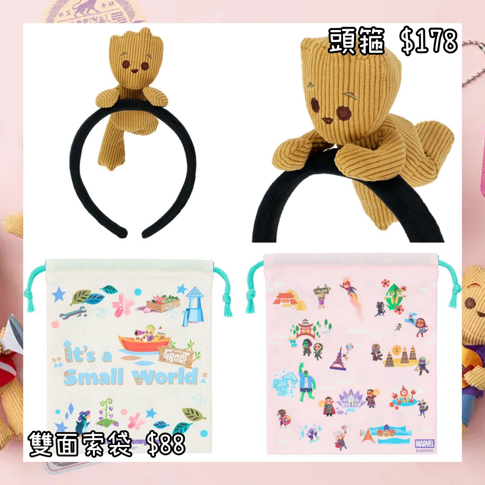 :日本:DISNEYLAND園區產品 IT’S A SMALL WORLD WITH GROOT 26/12 日本發賣 頭箍 雙面索袋