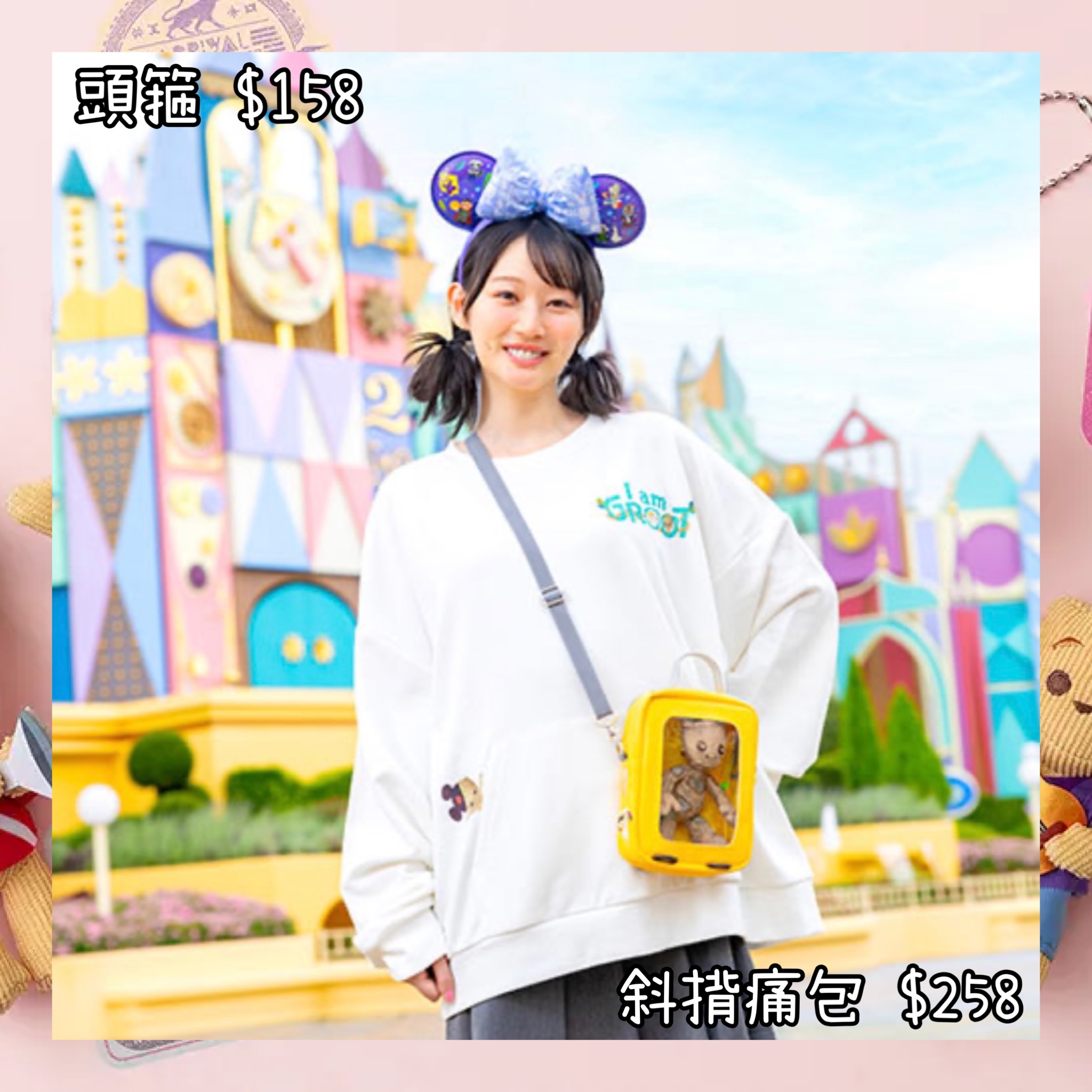 :日本:DISNEYLAND園區產品 IT’S A SMALL WORLD WITH GROOT 26/12 日本發賣 頭箍 斜揹痛包