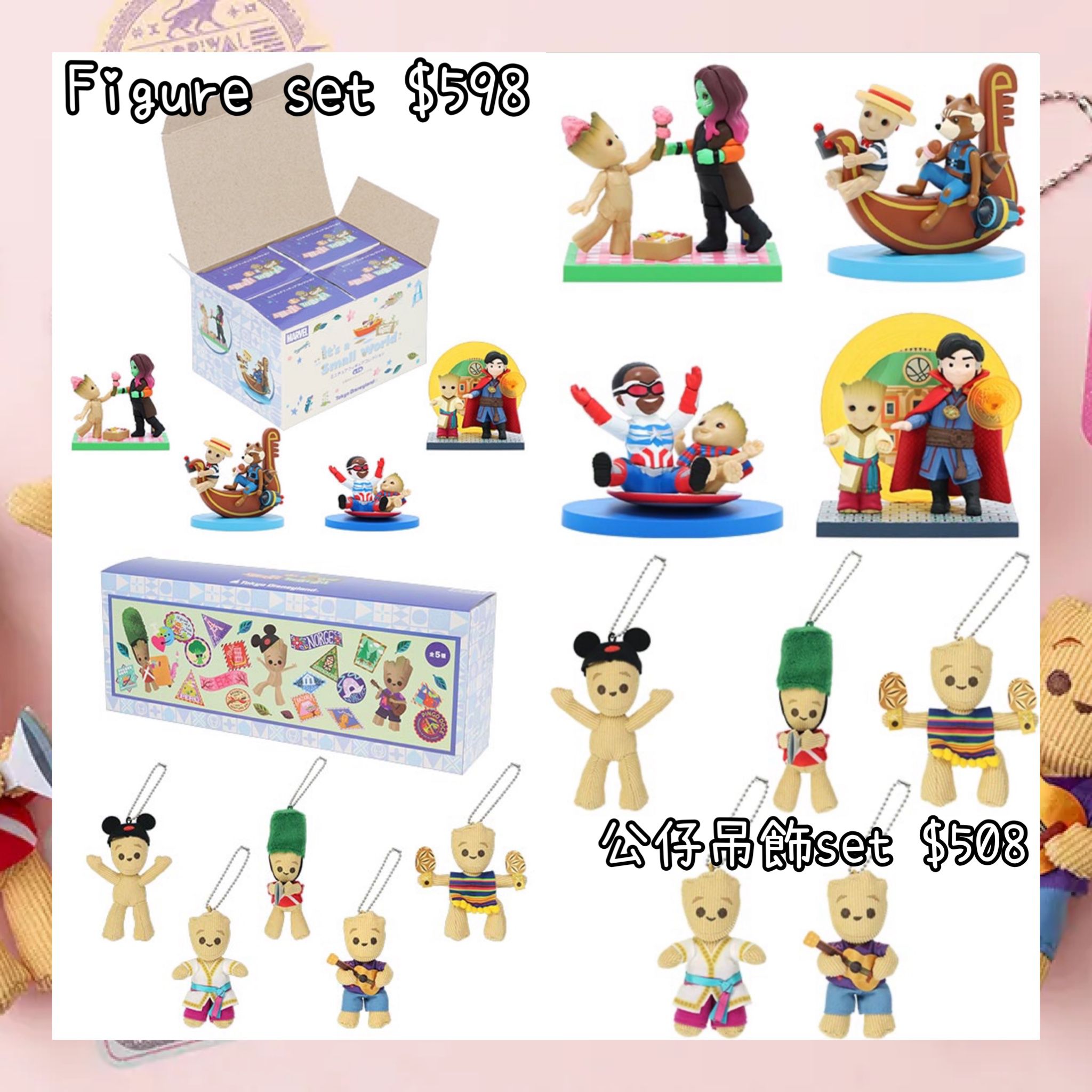 :日本:DISNEYLAND園區產品 IT’S A SMALL WORLD WITH GROOT 26/12 日本發賣 FIGURE SET 公仔吊飾 SET