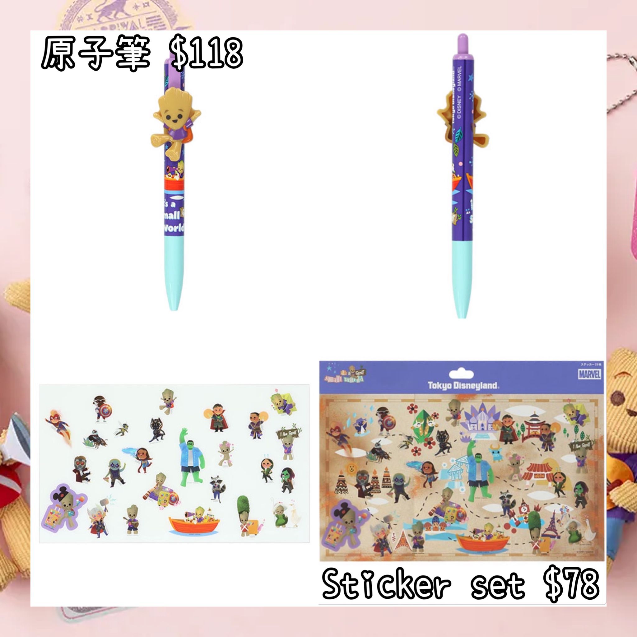 :日本:DISNEYLAND園區產品 IT’S A SMALL WORLD WITH GROOT 26/12 日本發賣 原子筆 STICKER SET
