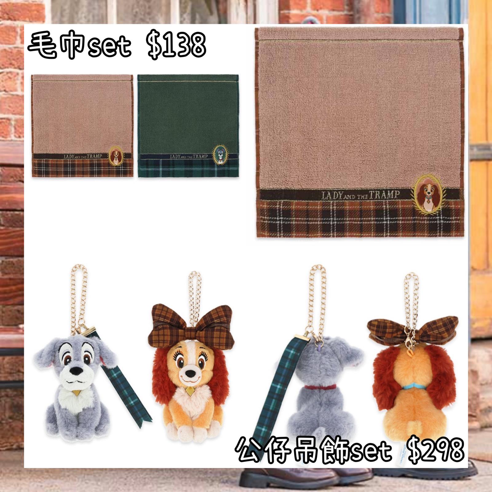:日本:DISNEYLAND園區產品 LADY AND THE TRAMP 26/12 日本發賣 毛巾 SET 公仔吊飾 SET