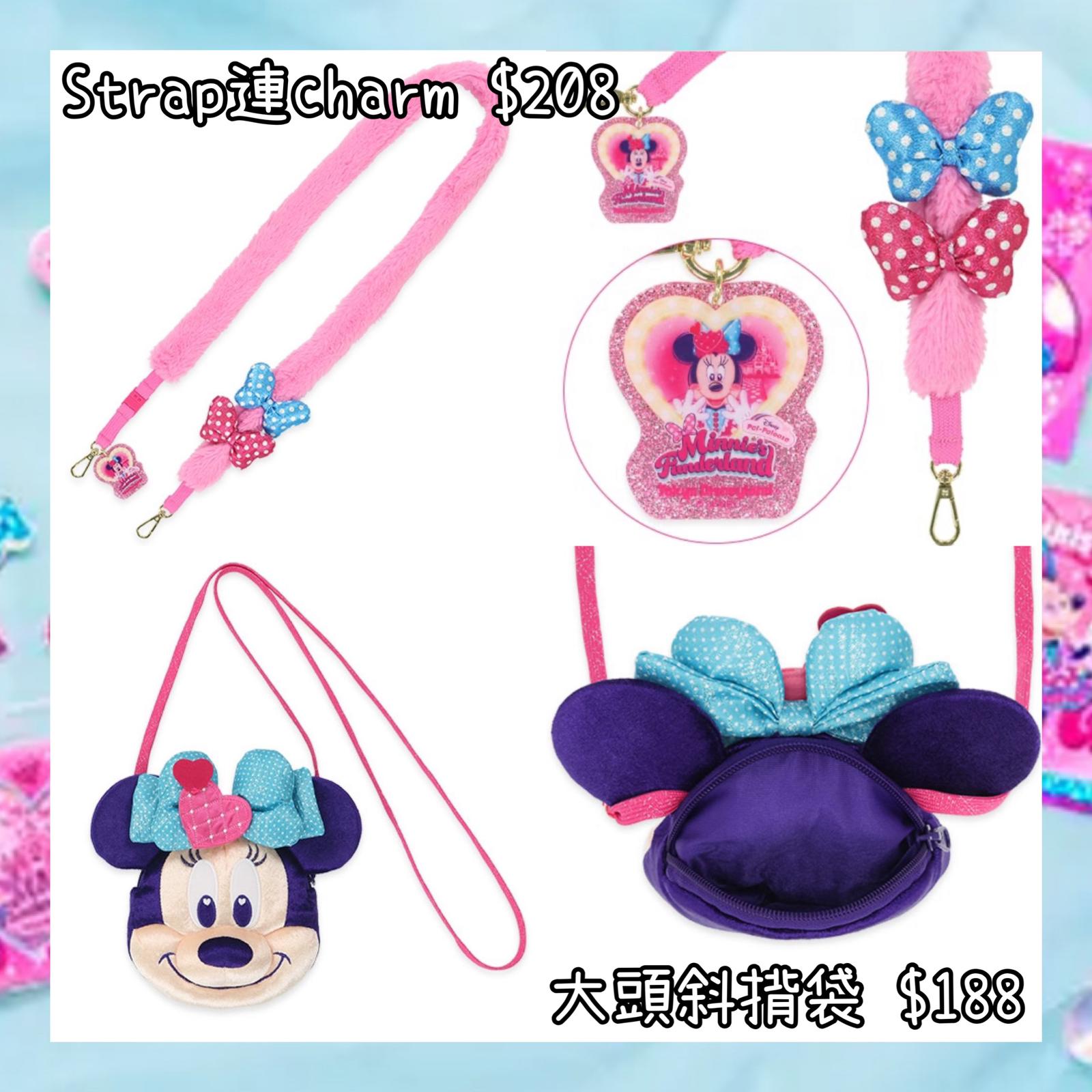 :日本:DISNEYLAND園區產品 MINNIE’S FUNDERLAND 13/1 日本發賣 STRAP 連CHARM 大頭斜揹袋