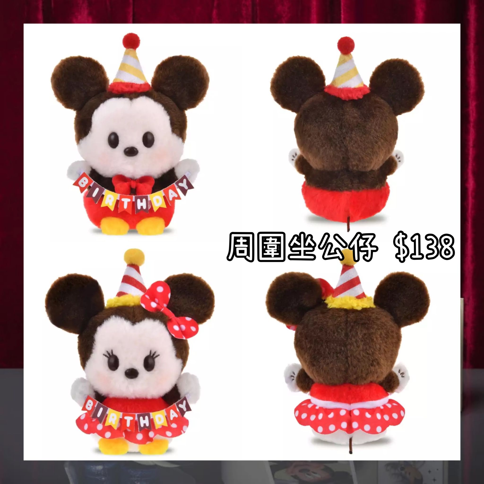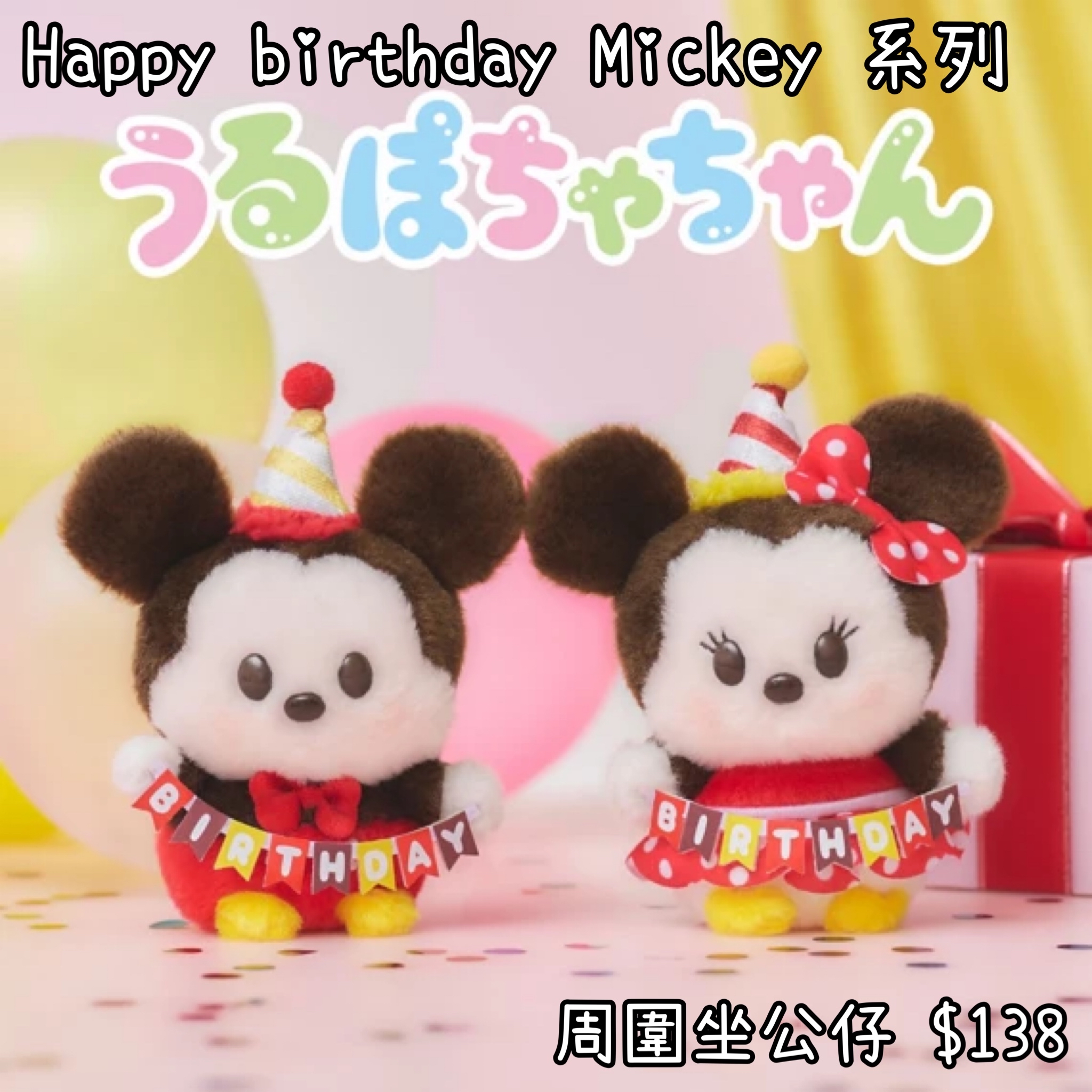:日本:HAPPY BIRTHDAY MICKEY 28/10 日本發賣 周圍坐 公仔